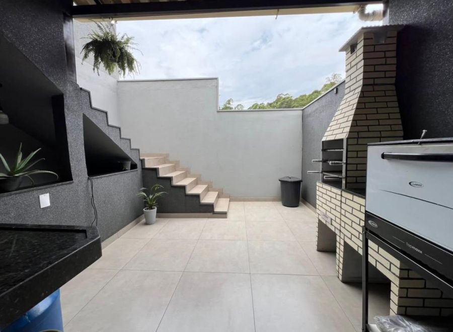 Varanda coberta com churrasqueira